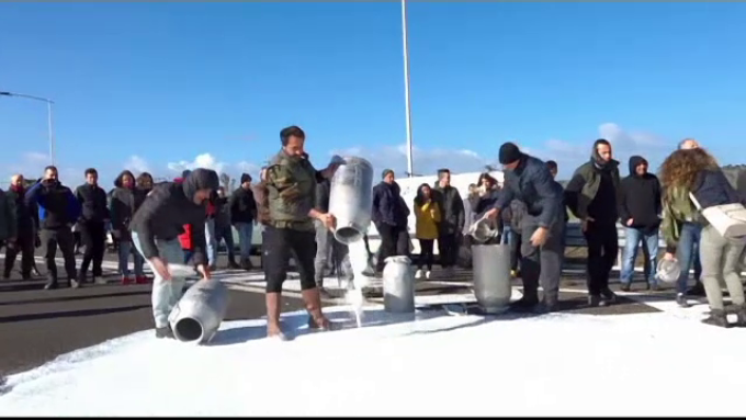 Ca urmare, au început să manifesteze la sfârşitul săptămânii trecute şi să arunce laptele pe şosele şi chiar pe maşinile care trec.